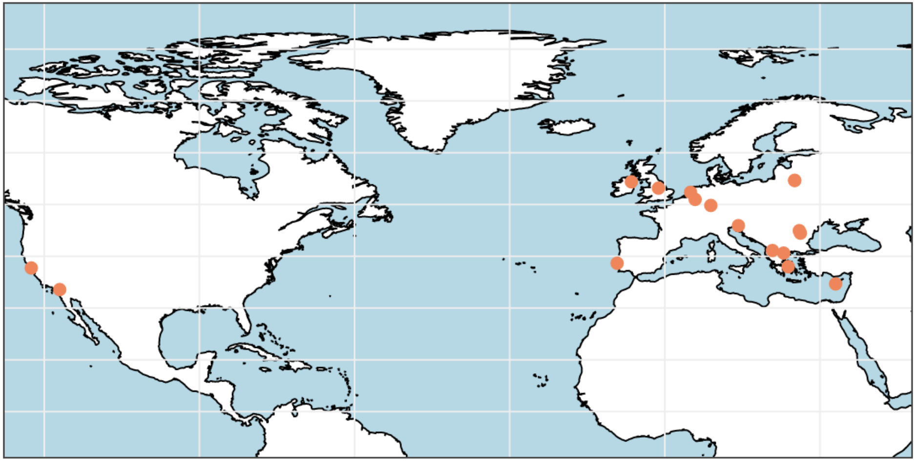 To ensure that we tailor these criteria to match the specifications of WeatherXM’s weather stations and to flag not suspicious but actually erroneous data, we utilised up to one year of data (09/2022 to 09/ 2023, where available) from 18 well-deployed weather stations at various locations (coastal, continental, lowland, hilly at various latitudes) (Figure 1). This extensive dataset allowed us to assess the constancy of key parameters, namely temperature, RH, and wind speed, which are prone to remaining unchanged for prolonged periods.
