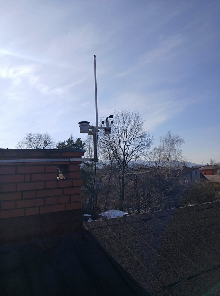 - The mast is much lower than the recommended height, and the temperature measurements are certainly affected by the dark-coloured roof.